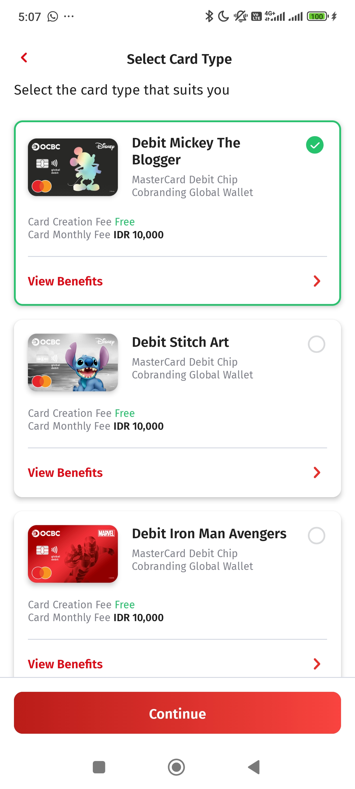 Customers who currently only have a GPN debit card linked to a Tanda 360 Plus account can request an additional Disney & Marvel edition Global Debit card via OCBC Mobile, similar to requesting a new card (point 2).