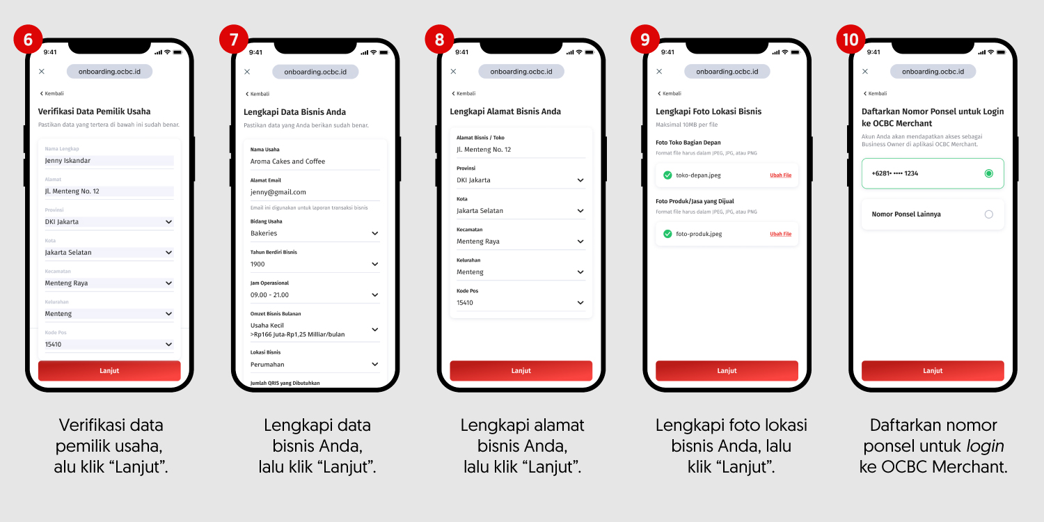 Untuk Nasabah individu, siapkan KTP, NPWP, foto usaha tampak depan (terlihat kanan kiri), serta foto produk usaha Anda. Pastikan NIK yang didaftarkan sudah dipadankan dengan NPWP Anda, serta pastikan nomor ponsel yang digunakan untuk mendaftar OCBC Merchant sama dengan nomor ponsel yang Anda gunakan saat membuka rekening OCBC, karena OCBC akan melakukan verifikasi data menggunakan nomor ponsel yang terdaftar pada sistem Bank.